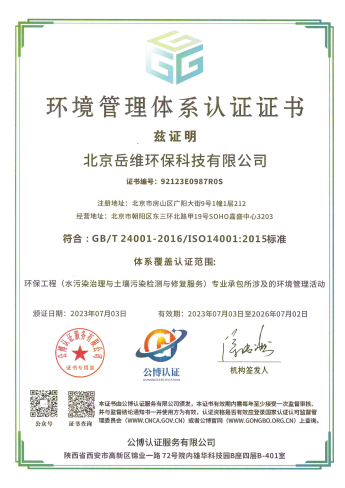 近日,北京岳维环保科技有限公司顺利取得了ISO9001质量管理体系、ISO14001环境管理体系、ISO45001职业健康安全管理体系认证证书。